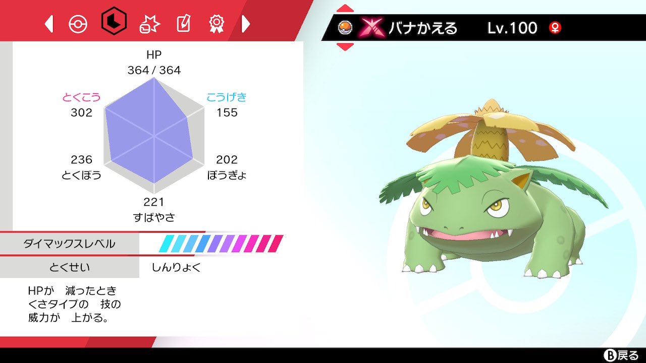Twitter 上的 タイツマン カイ少佐 Gmr ポケモン剣盾 フレンドがポケモン ストーリークリアした日にたまたま自分もやっとリザとウルトラムーンから連れてきた色フシギバナが育成終わったこのフシギバナ が性格まじめで個体値も低かったから大変だったフシギバナの努力